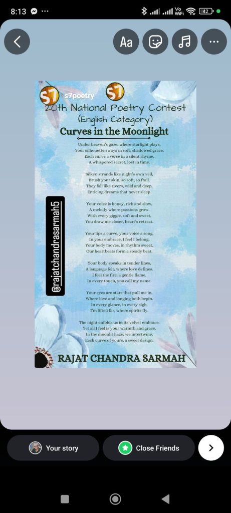 My Poem  “Curves in the moonlight “- for the 20th National poetry contest.