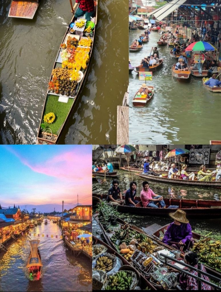 There’s something almost poetic about Thailand’s floating markets. Wooden boats glide through narrow canals, piled high with coconuts, papayas, spices, and bright lotus flowers. You hear laughter, a call for fresh mango, the soft clink of coins—and for a moment, the market becomes a floating carnival.